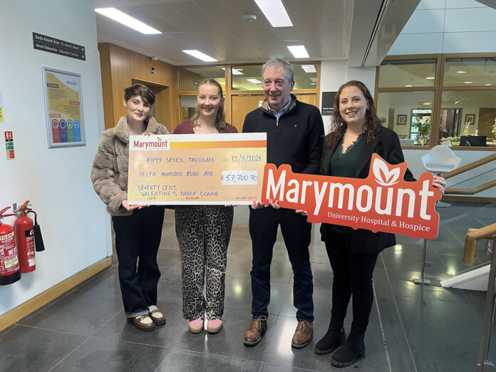 Exactly one month before the late Catherine Spillane’s first anniversary, a staggering €57,700.70 was presented to Marymount University Hospital and Hospice on Friday last, March 13th, the final figure reached following the Conna Valentine’s Dance and Monster Raffle held last month.